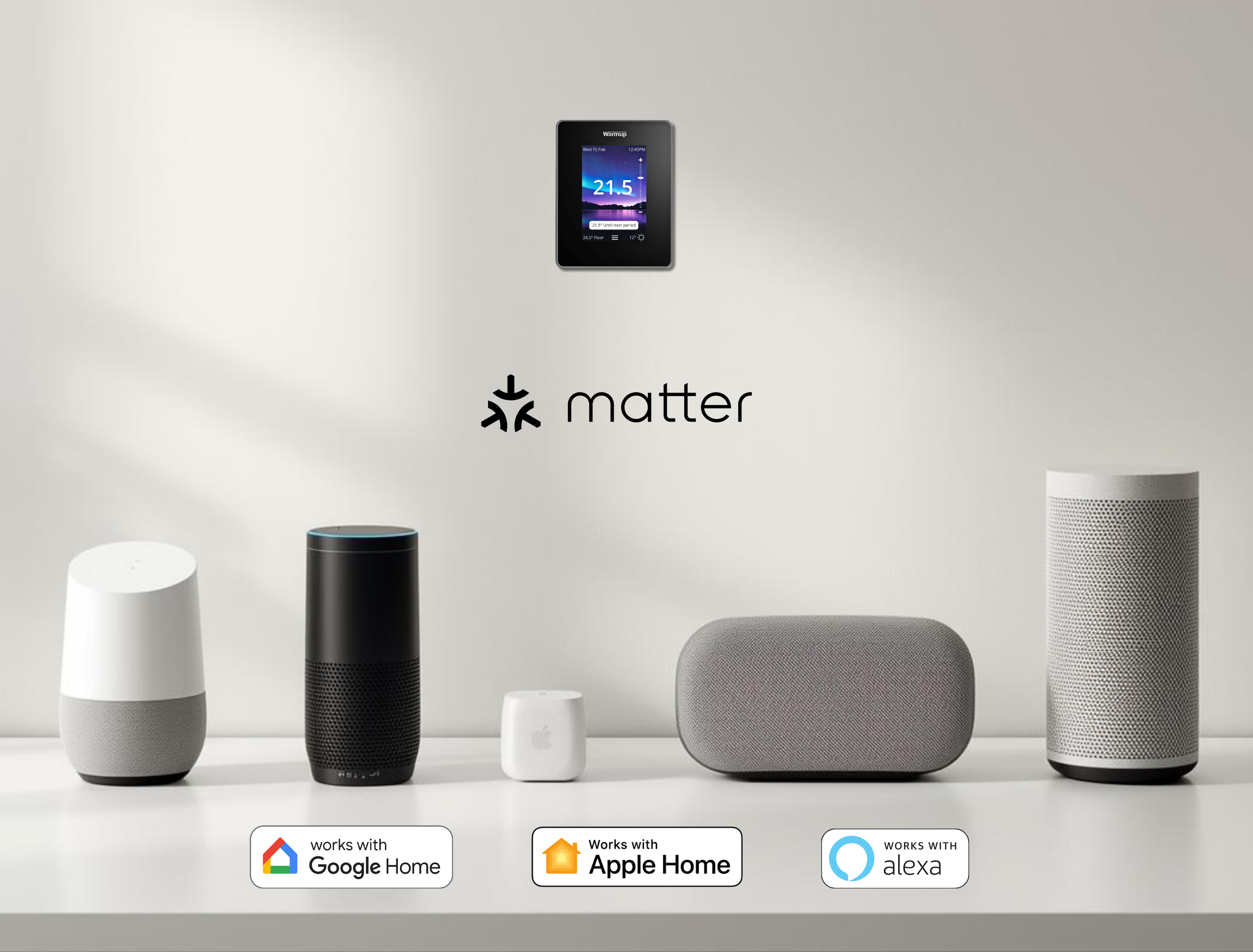Η προηγμένη τεχνολογία Matter επιτρέπει στον 7iE να ενσωματώνει τα συστήματα θέρμανσης στο περιβάλλον του έξυπνου σπιτιού. Ο έλεγχος είναι δυνατός μέσω οποιασδήποτε συσκευής συμβατής με Matter, όπως Apple Home, Google Home και Amazon Alexa. Η διαχείριση της θέρμανσης μπορεί να γίνει με φωνητικές εντολές ή αυτοματοποιημένες ρουτίνες από μία ενιαία πλατφόρμα, προσφέροντας μια απλοποιημένη εμπειρία.
